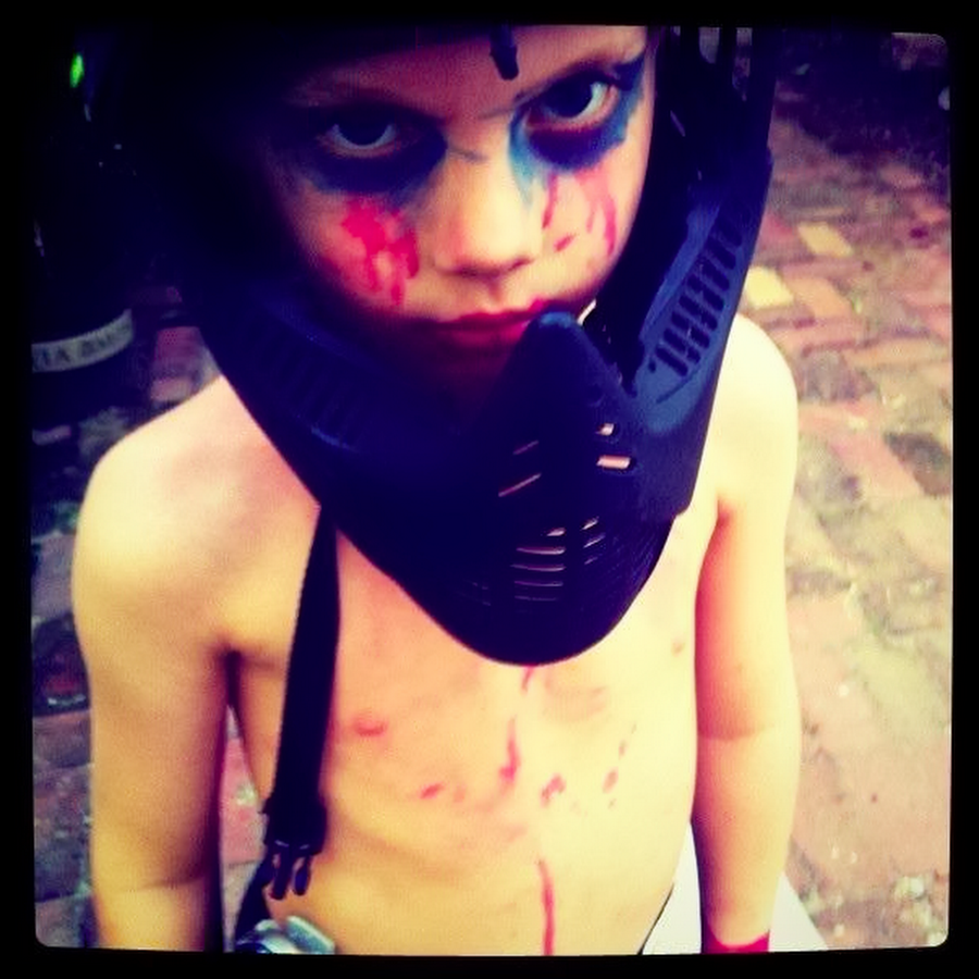 a kid, a box, a yard