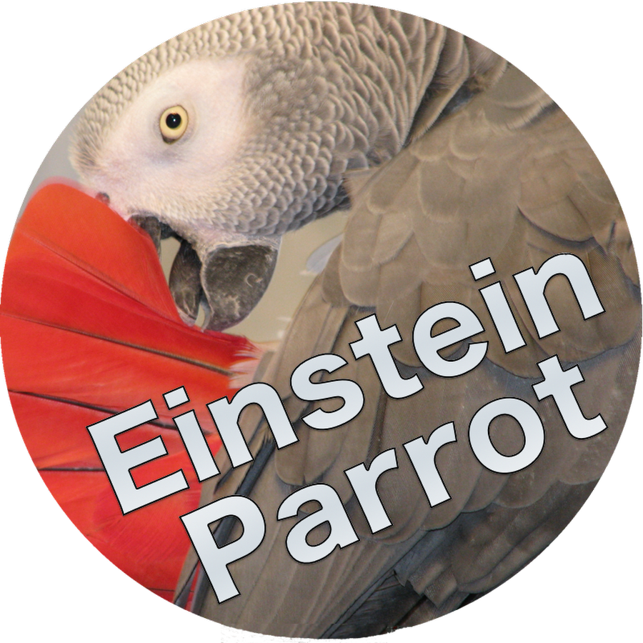 This is several clips of Einstein practicing her words on the shower ledge and on her perch in the kitchen. This is what we hear across the house when we're out of the room. (This is not the famo...